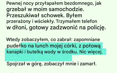 O północy znalazłem w swoim samochodzie bezdomnego mężczyznę i podjąłem decyzję, która odmieniła jego życie.